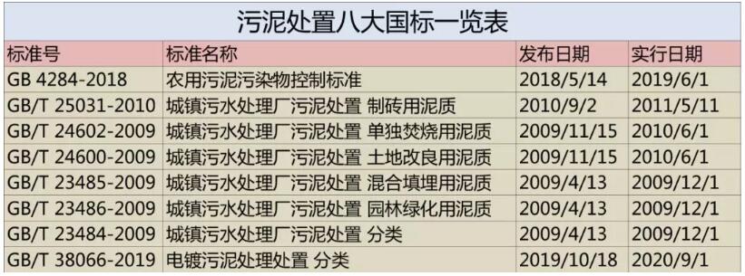 污泥處置八大國(guó)標(biāo)一覽表