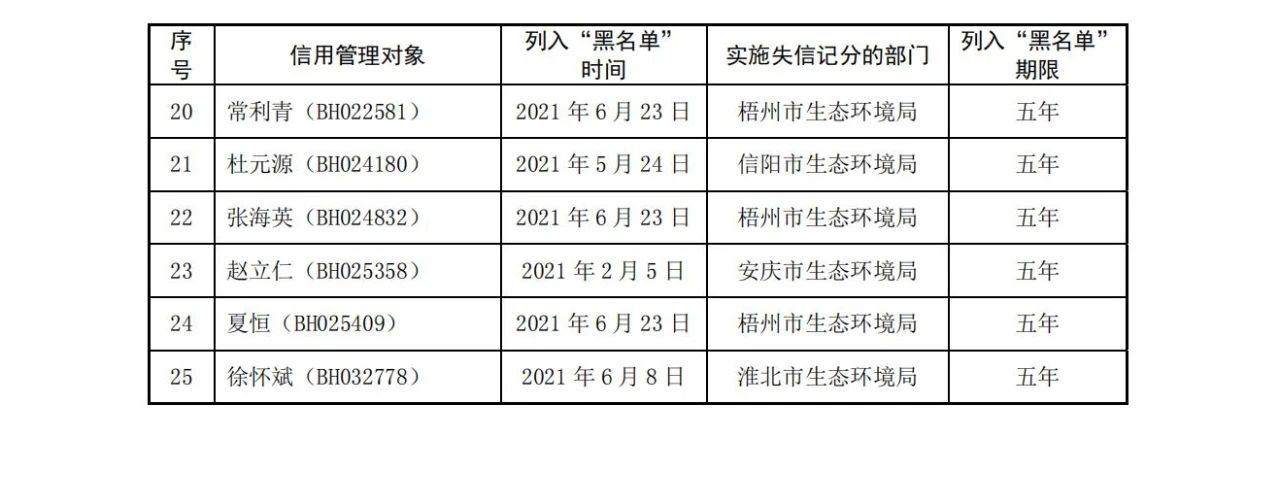 1.2021年上半年環境影響評價信用管理對象列入“黑名單”情況