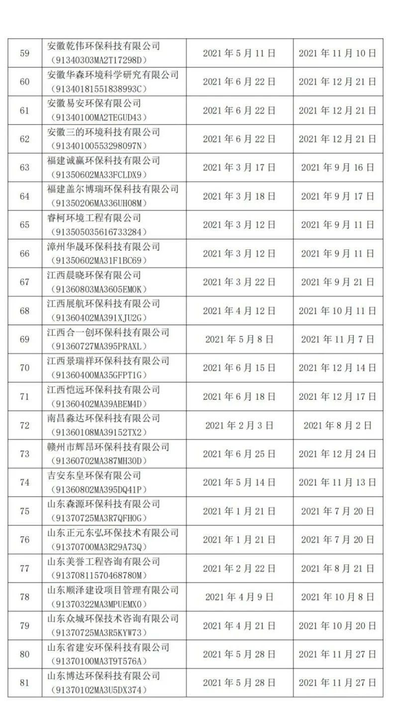 根據《建設項目環境影響報告書(表)編制監督管理辦法》相關規定,現將2021年上半年被環境影響評價信用平臺(以下簡稱信用平臺)列入限期整改名單和環境影響評價失信“黑名單”(以下簡稱“黑名單”)的信用管理對象情況通報如下。2021年1月1日至6月30日,河南金環環境影響評價有限公司、湖北周得福科技有限公司、重慶國達環保工程有限公司3家單位和22人因所編制的建設項目環境影響報告書(表)存在嚴重質量問題,受到禁止從事環境影響報告書(表)編制工作的處罰,被信用平臺列入“黑名單”。具體情況詳見附件1。2021年1月1日至6月30日,重慶大潤環境科學研究院有限公司、江西悅成環保技術服務有限公司、河北華睿風翰環保科技有限公司等119家單位和79人因在建設項目環境影響報告書(表)編制過程中存在失信行為較多,被信用平臺列入限期整改名單。其中,40家單位和23人被2次或2次以上列入限期整改名單。具體情況詳見附件2。